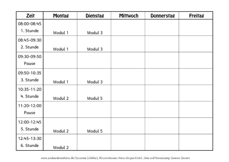 Die Schulung ist in insgesamt fünf Module aufgeteilt. Je nach Alter der Schüler:innen werden sie in die verschiedenen Schulungen A und B aufgeteilt und bearbeiten unterschiedliche Module (siehe Tabelle). Die Inhalte der Module sind: